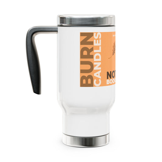 Travel Mug - Coffee Mug with Handle, 14oz - 'Burn Candles, Not Books'